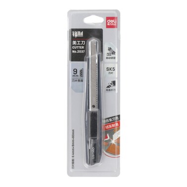 Deli's Metal Utility Knife Paper Cutter 9mm has a Manual blade lock and pocket hanging clip. This utility knife cutter is made of high-quality metal material. This Metal Utility Knife Paper Cutter has a strong plastic grip to hold comfortably. This best utility knife is suitable for cutting paper, raw plastic, packing tape, cord, etc. This retractable cutter can be a very good addition to your tool kit.