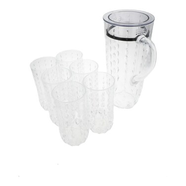 Enjoy your favorite beverage in this water drop cut jug and glasses. Perfect for everyday use at family dinners and entertaining at a home bar. Ideal jug for serving beverages at parties and events where you'd like to add a vintage look. It has a practical and versatile design that'll bring a fresh look to your dining table setting. Perfect for both formal and informal entertaining or any occasion.