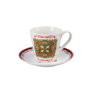 Heritage Cup and Saucer 6 Cup and Saucers is an ideal way to sever tea in breakfast or afternoon. With the sophisticated traditional golden swirl pattern design print in lovely orange, green and pink colours, its classic elegant choice to sever guest for a casual evening tea break or parties.