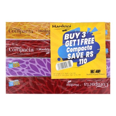 Hankies Compacta Hand Tissue 50 x 2 Ply Sheets (Pack of 4)