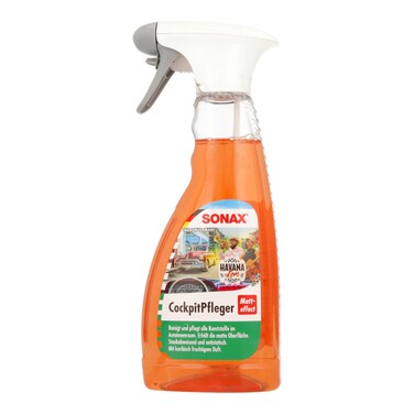 Sonax cockpit cleaner spray matt effect sport-fresh cleans and maintains all car interior plastics. Has a dust repellent effect, is anti-static and even maintains wooden fittings. Brings a new shine and fresh fragrance to the cockpit.