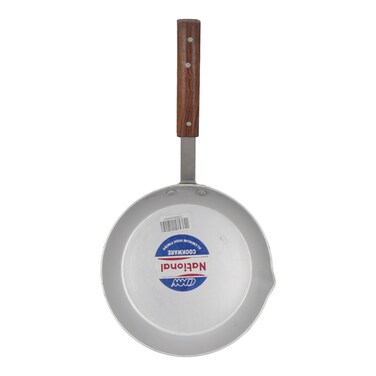 National cookware non-stick round frying pan features: heavy-gauge aluminium construction. The heavy body absorbs heat fast and disperses slowly. Scratch-resistant, two layers non-stick coating. The compact base for convenient and even heated cooking. High temperature-resistant bakelite (stay cool) handles.