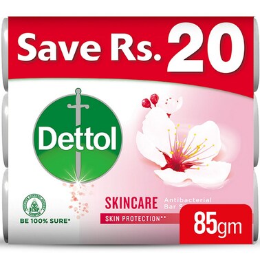 Dettol Skincare Antibacterial Bar Soap 85 gr (Pack of 3)